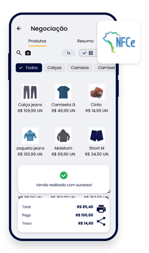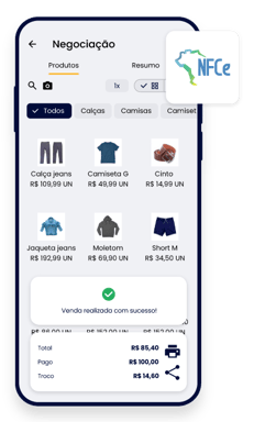 Criando a conta com seu CNPJ, você pode adicionar seu certificado digital e emitir NFC-e facilmente direto do sistema, sem necessidade de contratar um sistema adicional. Além disso, você pode emitir NF-e com NFC-e de venda referenciada direto pelo sistema.